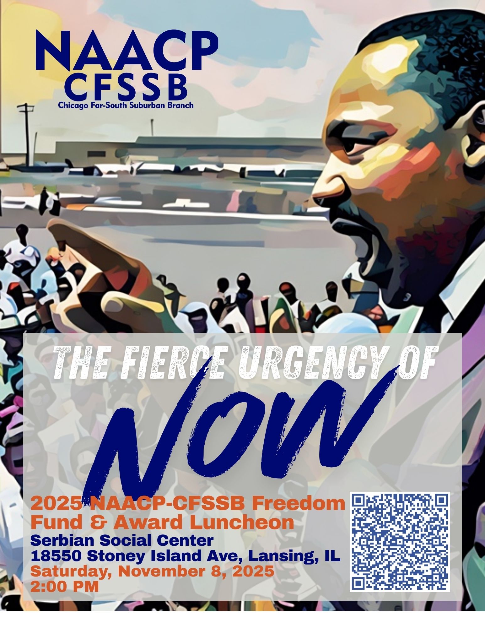The NAACP Chicago Far-South Suburban Branch (NAACP-CFSSB) is a branch of the NAACP, the nation’s oldest and largest civil rights organization. Receiving its charter in May of 1979, the NAACP-CFSSB has focused on fighting for civil rights and social justice in areas that include economics, environment, education, government, health, and justice in the South Suburban communities.